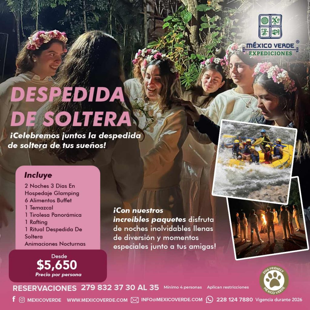 Disfruta de una escapada inolvidable con tus amigas antes de dar el gran paso hacia tu boda en Expediciones México Verde. Durante tres días y dos noches, sumérgete en un mundo de aventura, relajación y diversión diseñado exclusivamente para celebrar tu despedida de soltera.